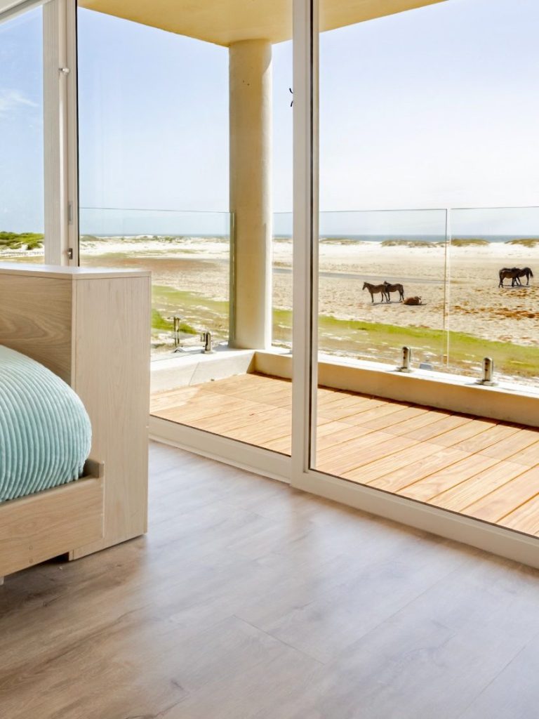 Imagine waking up early in the morning, stepping onto the terrace, and seeing a small group of horses grazing by the lagoon. Or watching them pass slowly by at sunset, reflected in the water, surrounded by silence.