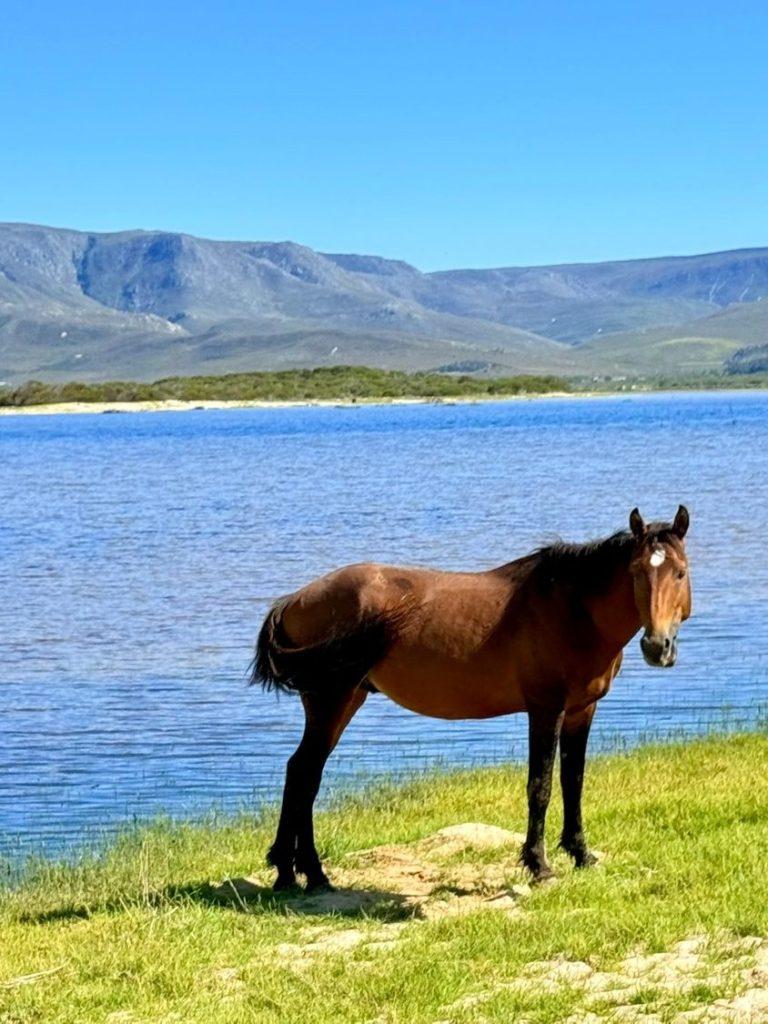 Wild horses roam freely around the Bot River Lagoon — moving quietly through the landscape, grazing by the water, and appearing when you least expect them.