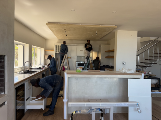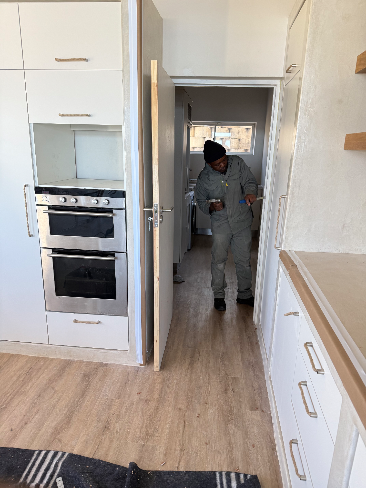 Angela übernahm mit Herzblut die Innenarchitektur: Sie plante Räume, wählte Stoffe, Lichtquellen, Farben und Möbel – vieles davon fand sie nach stundenlanger Recherche, manches über abenteuerliche Lieferwege, auf denen leider auch das ein oder andere Teil im südafrikanischen Post Office verloren ging :-).